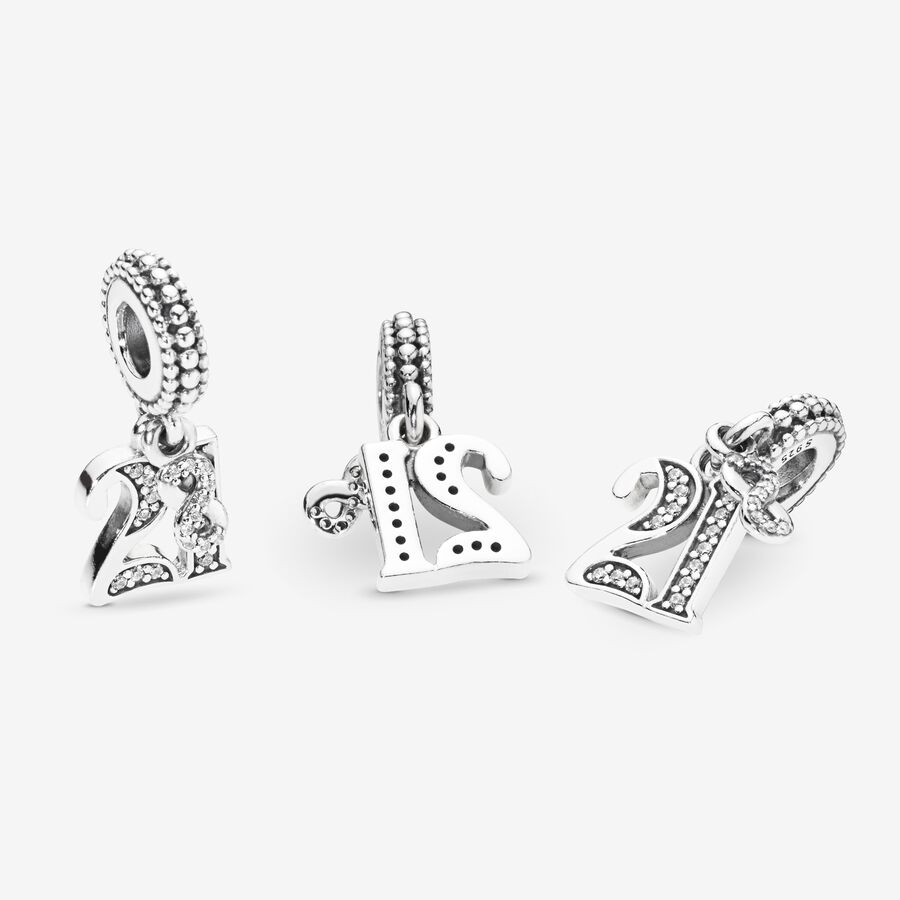 Mark a major milestone with this celebration charm. A lasting birthday greeting or gift for someone who never feels their age, our expertly crafted sterling silver dangle is shaped as the number 21, set with glittering cubic zirconia and a miniature infinity sign. It can be worn as a charm on Pandora Moments bracelets or as a pendant on a favorite necklace – because we all feel forever 21.
