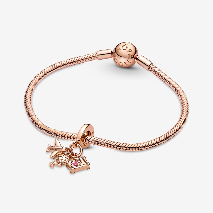 Airplane, Globe & Suitcase Triple Dangle Charm
