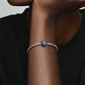 Feel the love in cool blue tones with the Blue Spinnable Heart Charm. The heart-shaped piece in sterling silver features hand-applied transparent blue enamel, making it perfect for adding a pop of colour to your charm stack. On this charm, one of the sides features a spinning disc covered in blue sparkle on one side and an engraved message that reads “My favorite PERSON” on the other. Please note that the disc is only spinnable when not styled, so we recommend deciding which side to show before wearing it. Gift it to your bestie and leave them in no doubt about how you feel about them!Compatible WithMomentsStoneMan-made crystalColourBlueThemesFamily and FriendsProduct TypeCharmsItem792750C01MetalSterling silverMaterialEnamelDimensionsDepth:9.3 mmHeight:10.3 mmWidth:12 mm