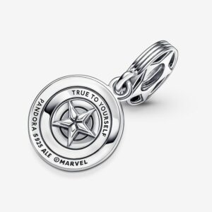 Reporting for duty: carry our Marvel The Avengers Captain America Shield Dangle Charm and share your love for the Marvel Cinematic Universe with the world. Captain America’s legendary shield shines bright in hand-applied red, white and blue enamel. Engraved with the message, “TRUE TO YOURSELF,” this sterling silver stunner symbolizes hope and protection. Add this charm and more of your favorite heroes to our Pandora Moments Marvel The Avengers Logo Clasp Snake Chain Bracelet.