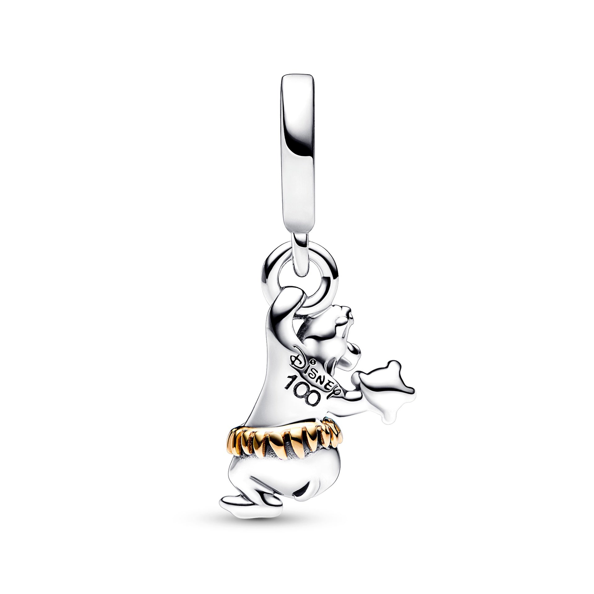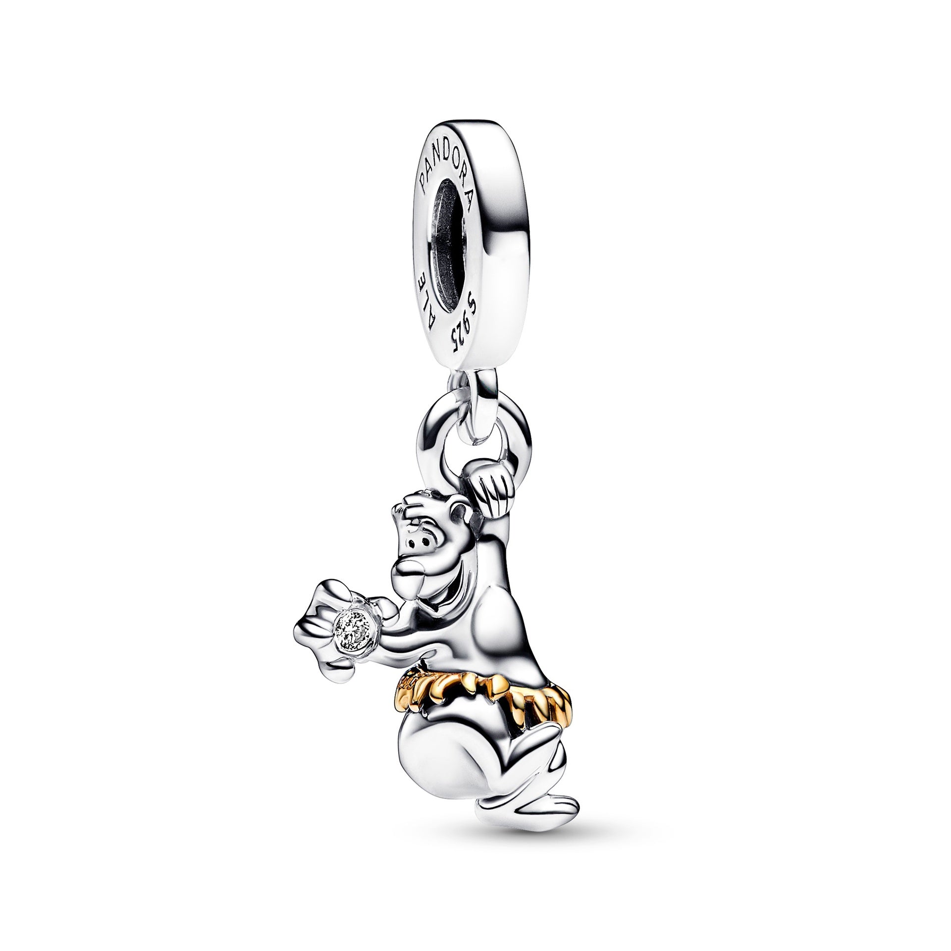 Can you hear a swinging beat? It’s our Disney 100th Anniversary Baloo Dangle Charm! The fun-loving, easy-going sloth bear from Disney’s The Jungle Book, Baloo is the life of the party and a loyal friend. Inspired by a scene from the much-loved film, our sterling silver charm captures Baloo dancing to the beat, wearing a solid 14k gold grass skirt and grasping a sparkling lab-created diamond in one paw. To commemorate 100 years of magic, “Disney 100” is engraved on his back.