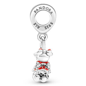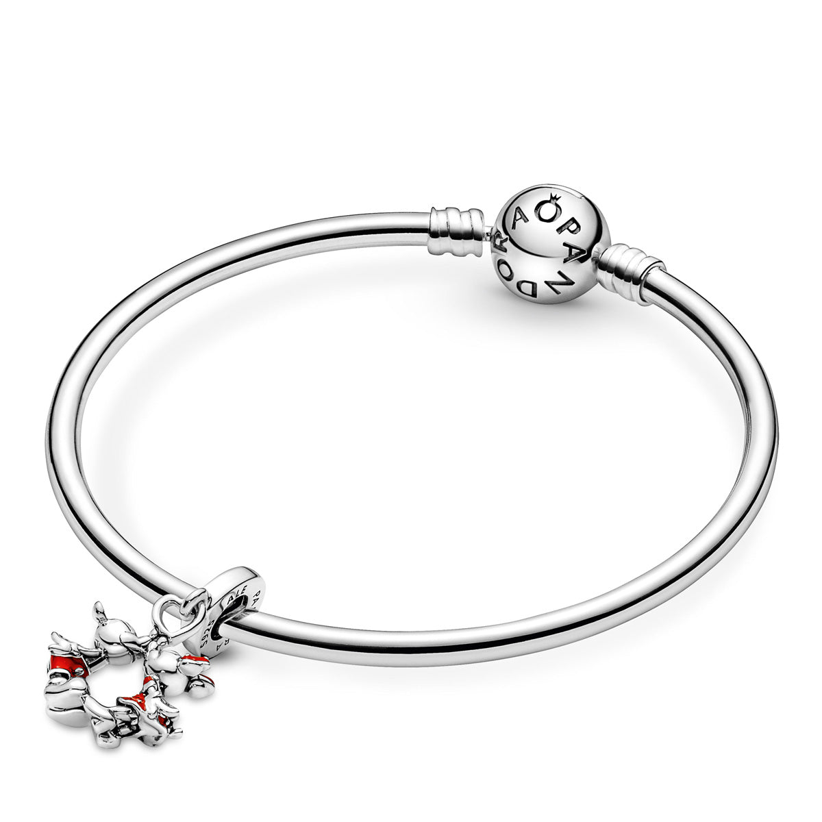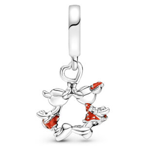 This Disney Mickey & Minnie Mouse Kissing Dangle Charm celebrates romance with one of the most iconic couples in the world. The cute kissing couple are hand-finished in sterling silver and decorated with red enamel and sterling silver beading. This adorable Disney x Pandora charm represents a happily ever after and would make a special gift for the one you love.