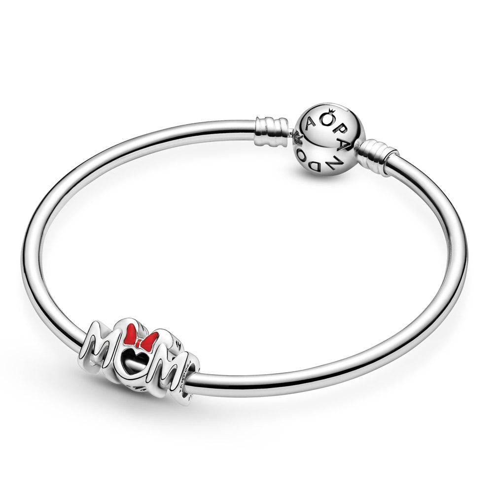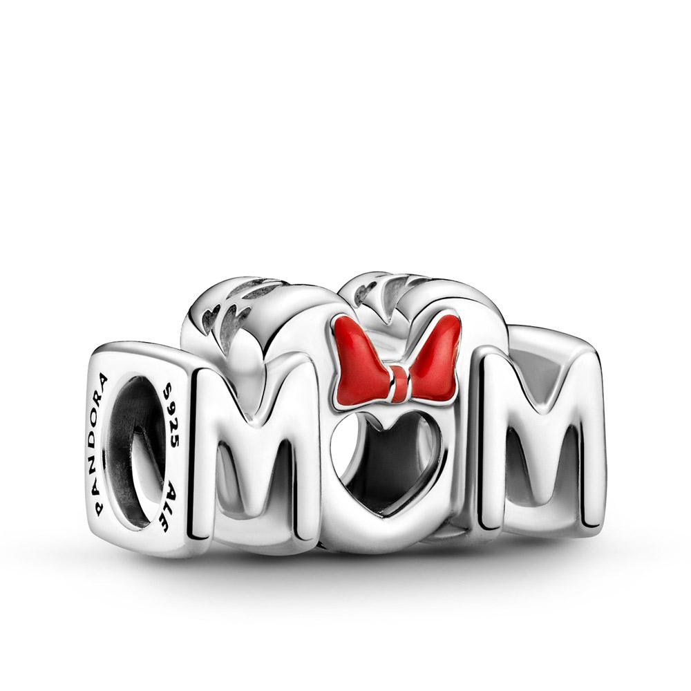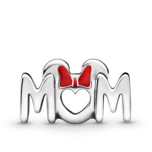 Introduce a touch of magic to her collection with the Disney Minnie Mouse Bow & Mom Charm. Hand-finished in sterling silver, this design includes “Mom” script with a symmetrical front and back. Polished Minnie Mouse ears and a bow decorated with hand-applied red enamel feature above the “U.” This charm includes the Disney and Pandora logo on both ends. Gift this style to your Disney-loving mom to make her extra happy. Due to the length of this charm, it does not move on small and medium-sized Pandora O Pendants or the Heart O Pendant.