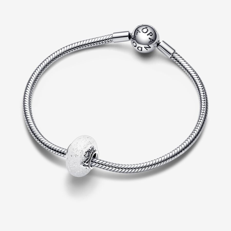 Glittery White Murano Glass Mom & Love Charm