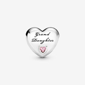 Celebrate the bond between grandparents and granddaughters with this sterling silver family charm, shaped as a heart. Polished to a high shine, the simple yet meaningful style is trimmed with heart-shaped pink stones and the engraving “Grand Daughter.” We think it makes a meaningful gift to show the story you share.