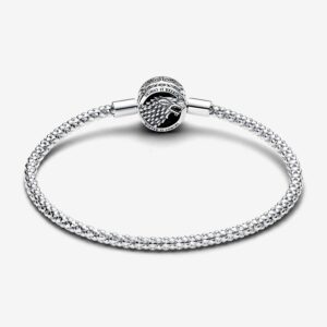 Face the elements with the Game of Thrones House Sigil Clasp Pandora Moments Studded Chain Bracelet. A sterling silver chain features a clasp with key Game of Thrones symbols. One side honours Stark family ancestry with an openwork direwolf and a “WINTER IS COMING” engraving. The other side of the clasp honours Targaryen family mythology, portraying a 14k gold-plated triple dragon sigil and a “FIRE & BLOOD” engraving. Through this Game of Thrones bracelet, represent your own kingdom.