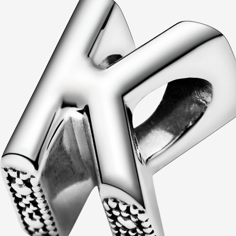 Tell your style story through our letter charms that let you spell out the words that mean the most to you. Monogram your Pandora Moments charm bracelet with important initials or create a personal message with the letter K. The reversible sterling silver charm is polished on the front and feature raised hearts and beads on the back. Add the letter K to your charm collection or gift it to someone that’s got a special connection to the letter.
