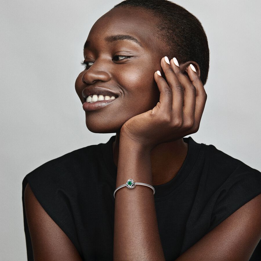 Add a pop of color to your bracelets and pendants with this Royal Green Eternity Circle Charm. This special piece is made in the shape of an infinity braid and is set with a deep green crystal at its center. Symbolizing eternity, add this sparkling charm to your styling to give your everyday jewelry a bright update.