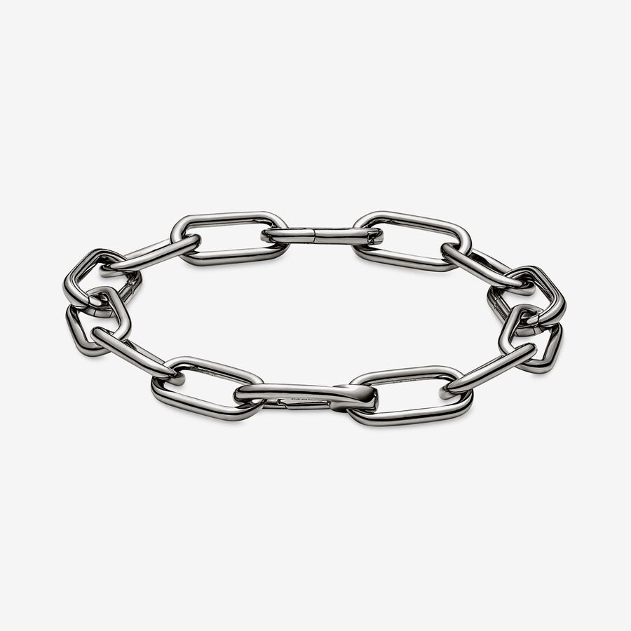 Wear your mantra on your wrist. Our ruthenium-plated Pandora ME Link Chain Bracelet holds endless styling possibilities. The bracelet features three openable connectors, designed with a grooved surface to set them apart, styling links and a carabiner clasp closure. First customise your link chain: one set of interlocking styling links can be swapped out between each styling connector for four small interlocking links, a styling double link or one styling link – keep the original length or adjust it to suit you. Once you’ve curated your link chains, remix your look with up to two meaningful medallions or up to eight mini dangles on each openable connector, or with one medallion per styling link to show the world what you’re about. Please note this item is only compatible with Pandora ME jewelry and will not fit our other collections.Discover how to mix and re-mix your Pandora ME look .