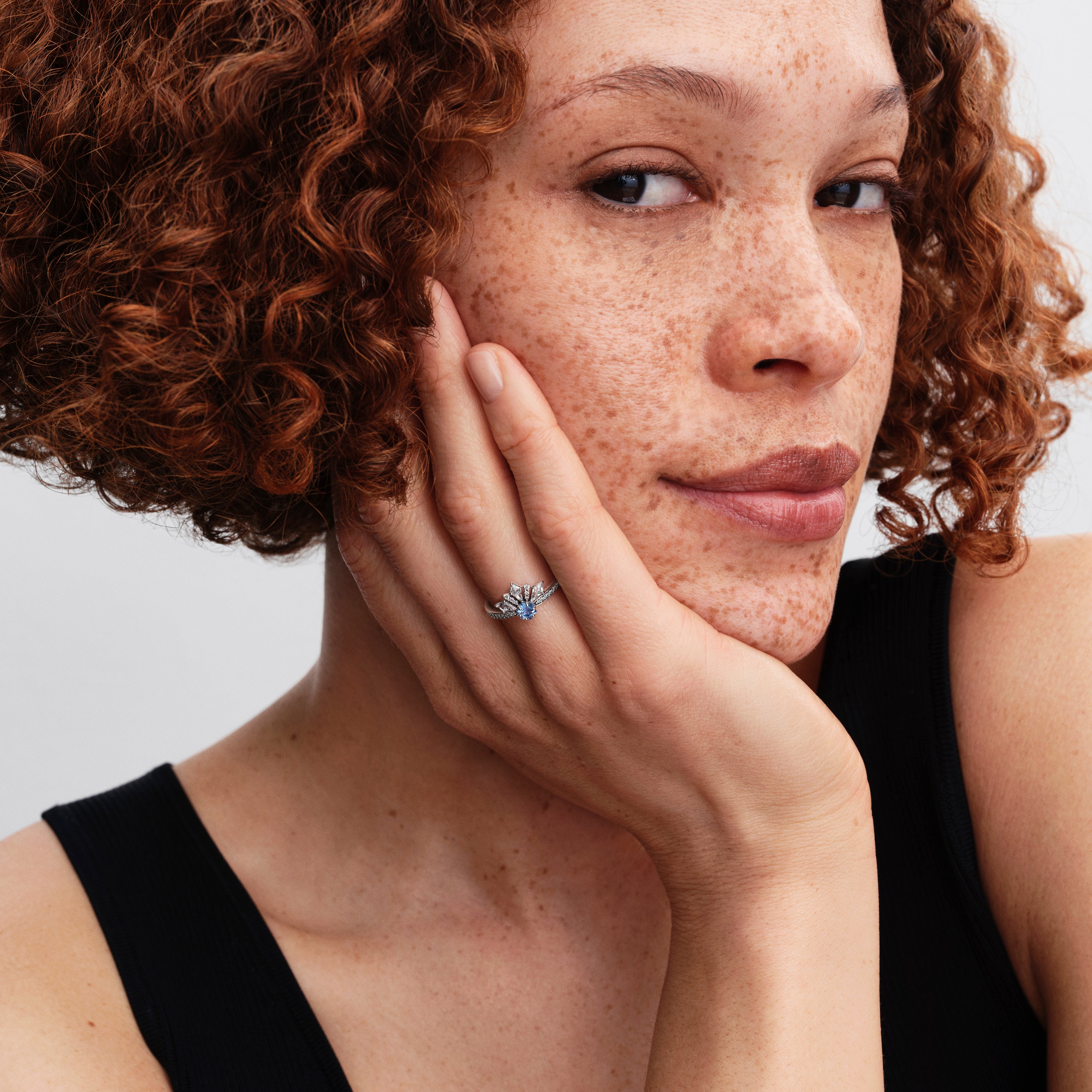 Shine like the Snow Queen. Show your love for Disney’s Frozen with this striking sterling silver ring designed in a tiara constellation and featuring blue and clear stones.