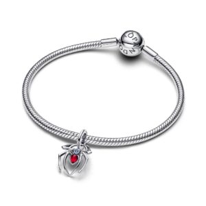 Swing into style with the sterling silver Marvel Spiderman Dangle Charm. Featuring blue and fuchsia man-made crystals, its openwork design captures resilience and strength. Perfect for adding a pop to your collection.