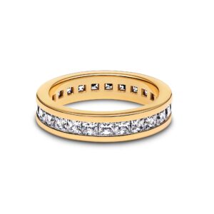 Go bold with the Oval Sparkling Halo Statement Ring. This sterling silver ring features a large centred raised oval stone surrounded by a halo of pavé, as well as a row of pavé on the top. Inspired by the bonds you love and cherish, this ring is designed to be stacked together with other styles, complementing and adding sparkle to your look. Combine it with other cool-toned rings for a monochromatic effect or play with multi-tonal styling when you mix in other metals.