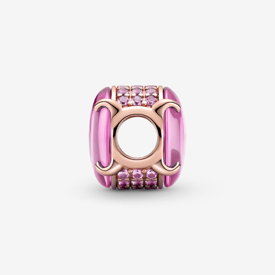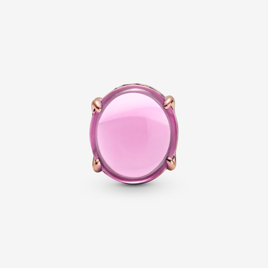 Show your love of colour with the Pink Oval Cabochon Charm. Hand-finished in 14k rose gold plating, this piece features two oval cabochon-cut stones to create a see-through button-shaped charm. The edges are lined with pink stones for added sparkle. Style this piece on its own on your go-to Pandora Moments bracelet for an eye-catching effect. Alternatively, wear with other colourful designs for a striking look.