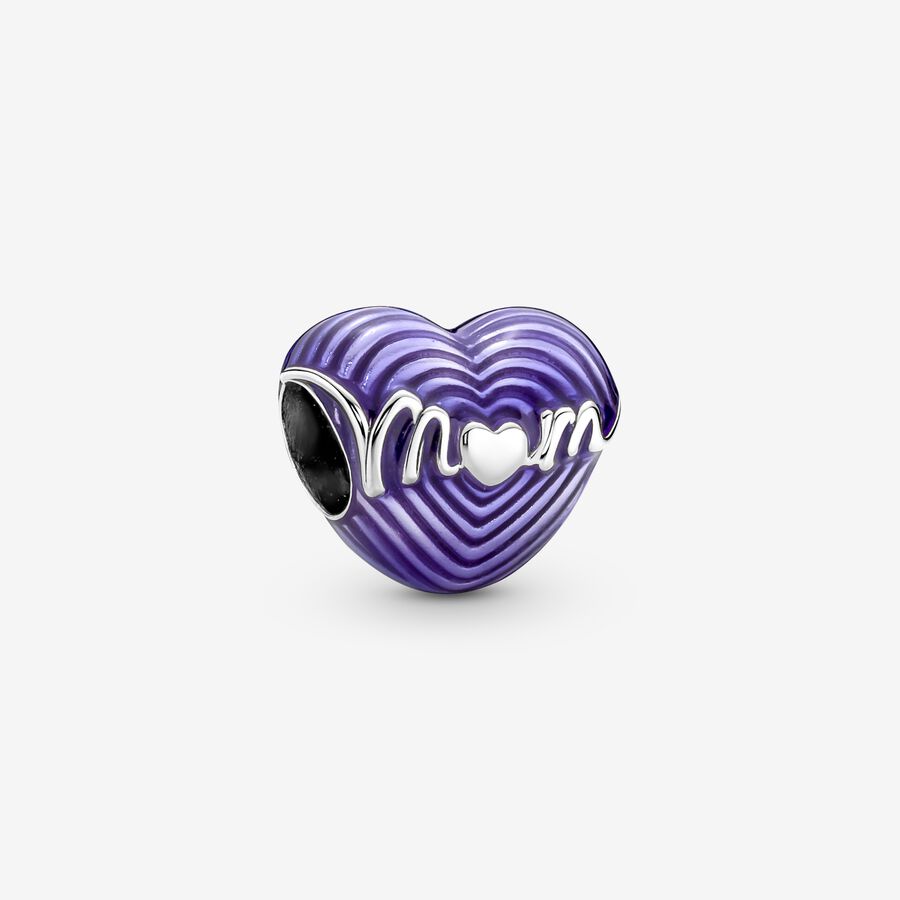 Add a pop of color to Mom’s bracelet with the Radiating Love Mum Heart Charm. This retro-looking piece features hand-applied transparent purple enamel on sterling silver to create the effect of expanding heart outlines. A symbol of Mom’s radiating love.