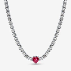 - 💖 Make a bold statement with the Red Sparkling Heart Tennis Jewelry Set, a complete jewelry set that includes a ring, necklace, tennis bracelet, and stud earrings. Each piece is beautifully crafted from sterling silver and features a single red heart stone surrounded by hand-set clear cubic zirconia that sparkles with every movement. The heart motifs add a touch of romance and elegance, making this set perfect for special occasions or everyday wear. Whether you’re treating yourself or searching for the ideal gift, this captivating full jewelry set is sure to impress and add a vibrant pop of color to any outfit!