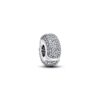 Spread the love with the Sparkling Leveled Hearts Charm. Hand-finished in sterling silver, this piece is inspired by key design features from the Pandora Timeless collection. This charm features an elevated heart-shaped stone at the center outlined by two rows of clear stones. A cut-out heart pattern features on the sides. Style this piece on your go-to Pandora Moments bracelet with simple charms in sterling silver to make a sparkling statement.