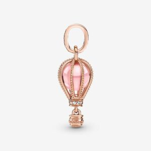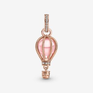 Reach new heights with the Sparkling Pink Hot Air Balloon Dangle Charm. This warm-toned charm is hand-finished in 14k rose gold plating. Beaded ropes encase a fairy tale pink crystal accented by shimmering clear cubic zirconia. The bail and base of the balloon are embellished with glittering pavé. Below, a small gondola awaits to transport you to your destination. Wear it for daily inspiration or gift it to someone who is ready for their next adventure.