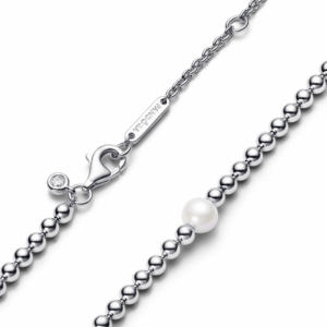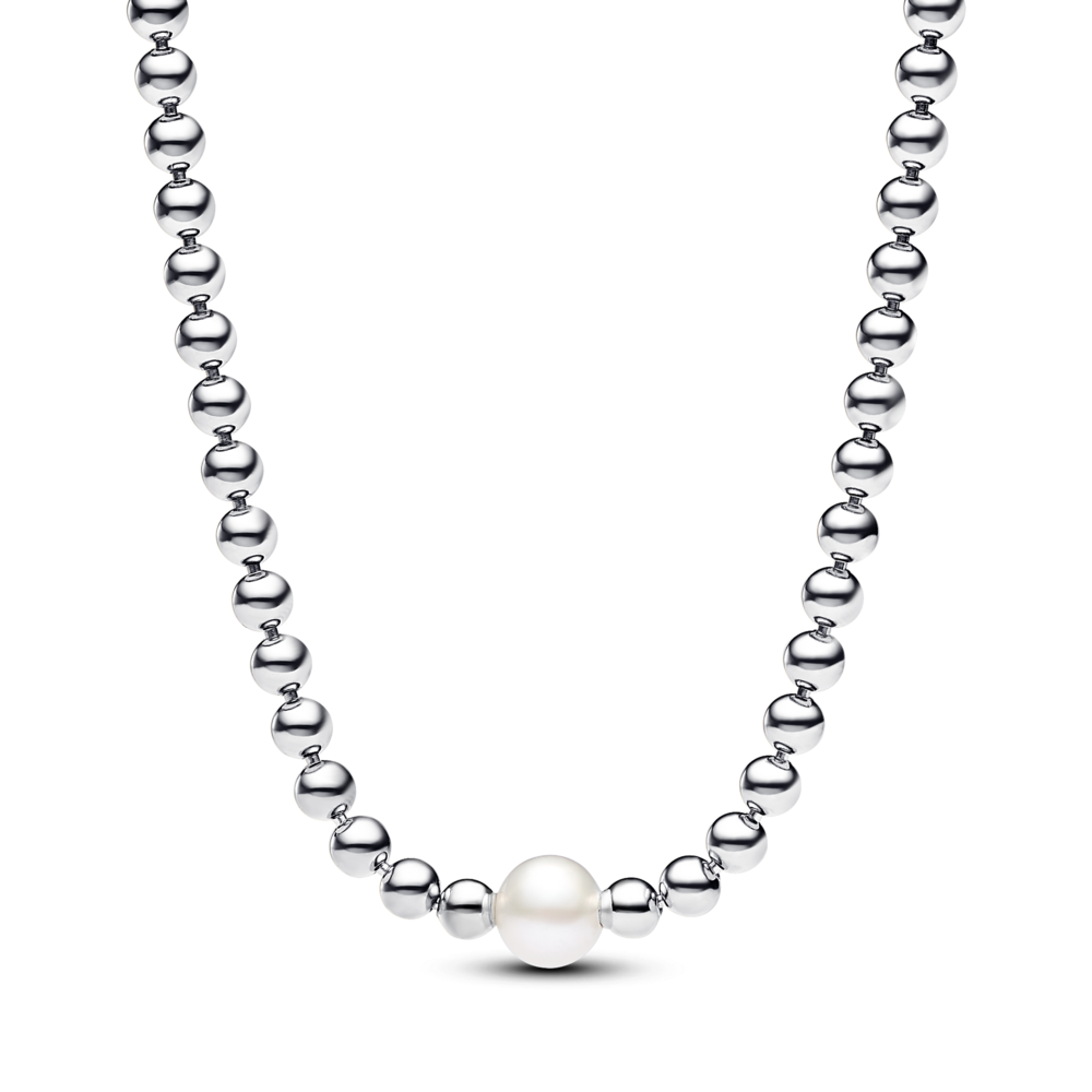 Elevate your style with our Treated Freshwater Cultured Pearl & Beads Collier Necklace. Plated with 14k gold or sterling silver, the necklace features a lustrous white treated freshwater cultured pearl set among the beads. The pearl and bead motif, with adjustable lengths, adds a touch of modern elegance to any outfit. This beaded necklace is a timeless addition to your jewellery collection, perfect for gifting or enhancing your everyday look. Please note each treated freshwater cultured pearl is unique and can vary in size and colour; normal wear and tear may occur with this material. Our freshwater cultured pearls are treated with bleaching and lustre enhancement.
